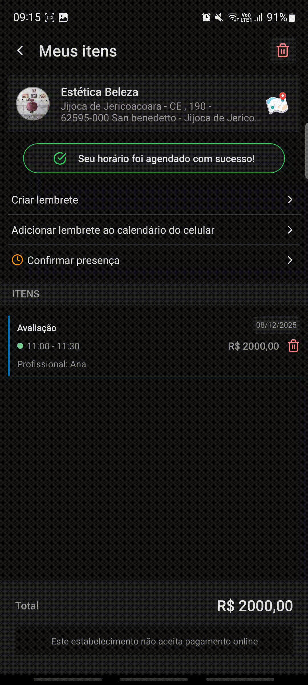 Confirmar presença via app na tela da comanda